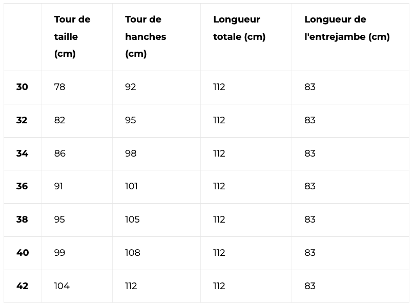 Guide des tailles pour le pantalon de moto en jean pour hommes avec doublure protectrice