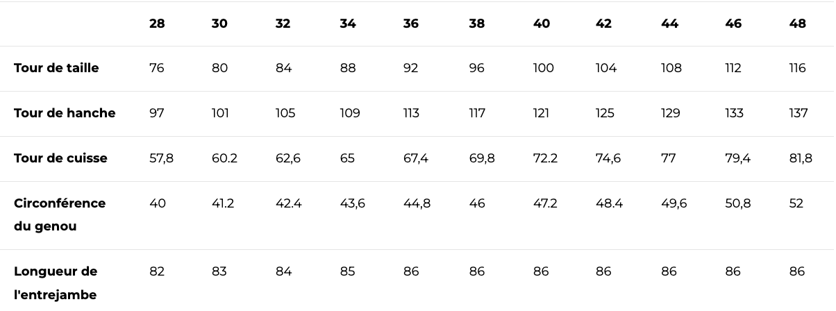Guide des tailles pour le jean de moto pour hommes à résistance extrême avec protections CE pour les genoux