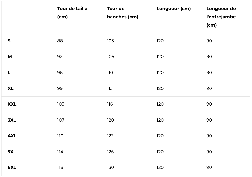 Comment prendre les mesures : Ce sont les dimensions extérieures du vêtement lorsqu'il est légèrement étiré. Ce ne sont pas des mesures corporelles. L'idéal est de comparer les dimensions avec celles de vos vêtements qui vous vont bien. Pour les vêtements avec des couches intérieures, tenez compte de leur présence.