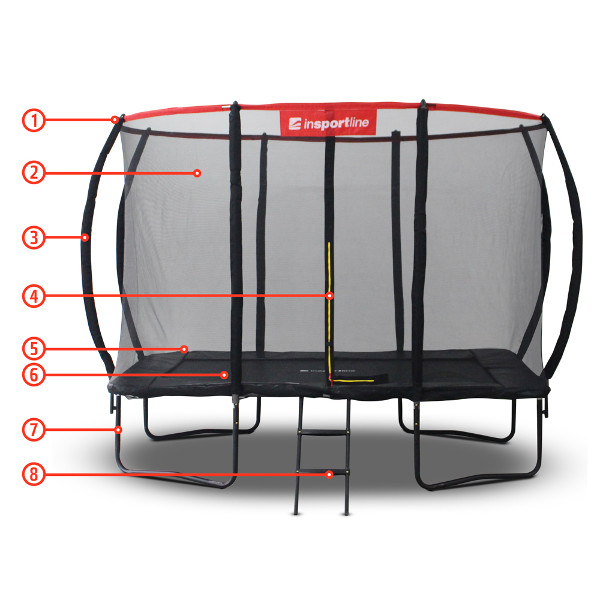 Le reste du trampoline haut de gamme est également sûr. Les ressorts qui maintiennent le trampoline sont cachés sous une housse de protection tandis que les poteaux du filet sont rembourrés de manchons en mousse. L'échelle antidérapante vous permet de monter sur le trampoline en toute sécurité tandis que l'entrée est sécurisée non seulement par une fermeture éclair, mais aussi par des boucles. Avec ses dimensions de 244 x 335 cm, ce trampoline s'intégrera parfaitement dans votre jardin. Si vous cherchez à divertir les membres agités de la famille (y compris les adultes), le Trampoline Rectangulaire PRO 244*335 cm est la solution idéale !