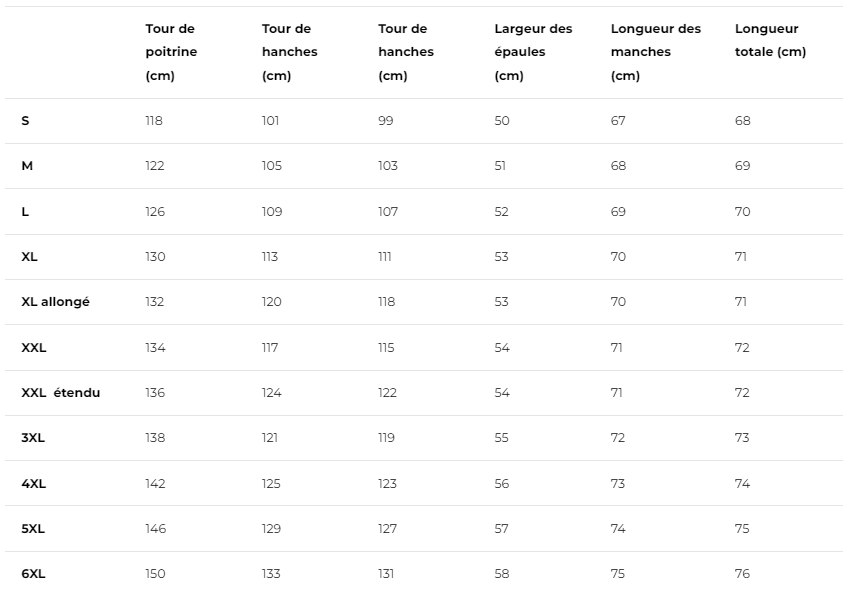 Guide des tailles de la veste de moto respirante pour Hommes :